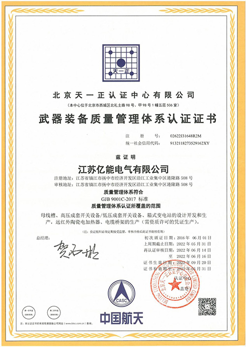 武器装备质量管理体系认证证书(国军标)
