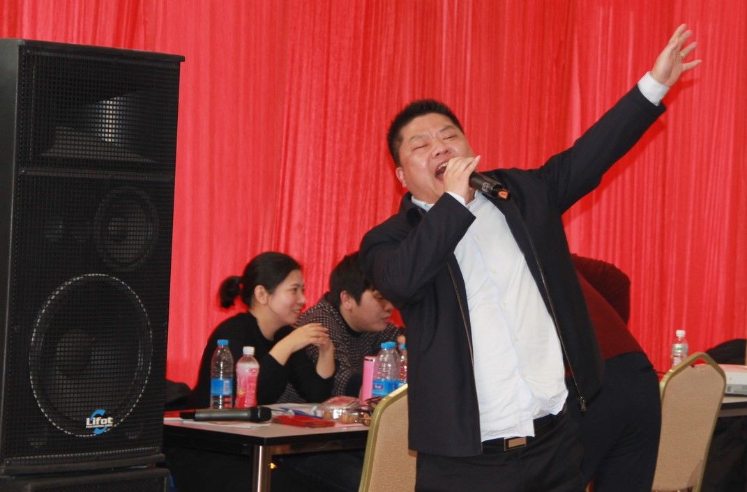 ▲销售精英鞠杰忘情歌唱《等待》,销售精英孙显龙献唱经典粤语歌《海阔天空》,销售精英陶纪荣真情献唱《天边》,获得满堂喝彩。