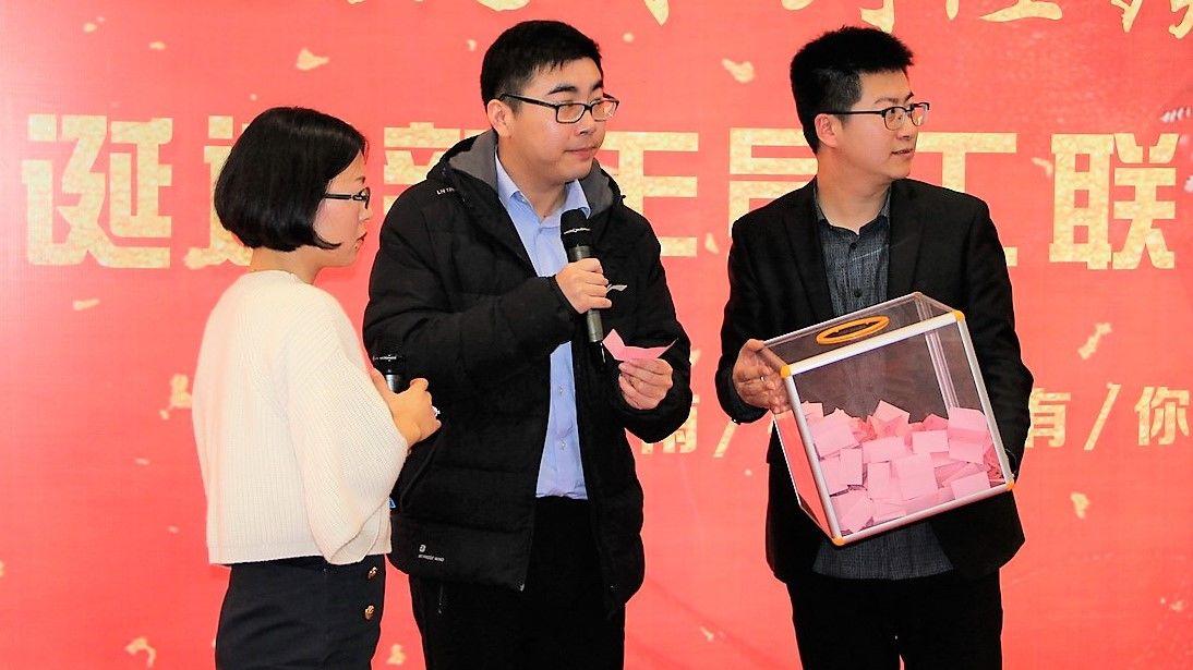 ▲亿能集团副总经理周涛抽取二等奖幸运员工
